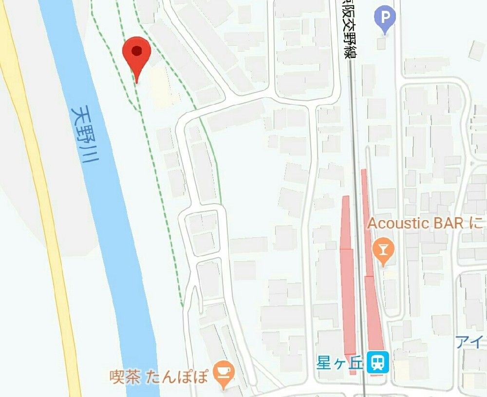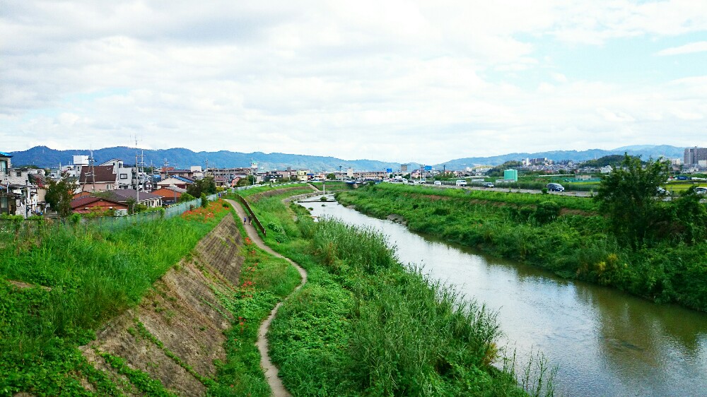 天野川沿いの土手、歩きか自転車でしか行けない場所です。