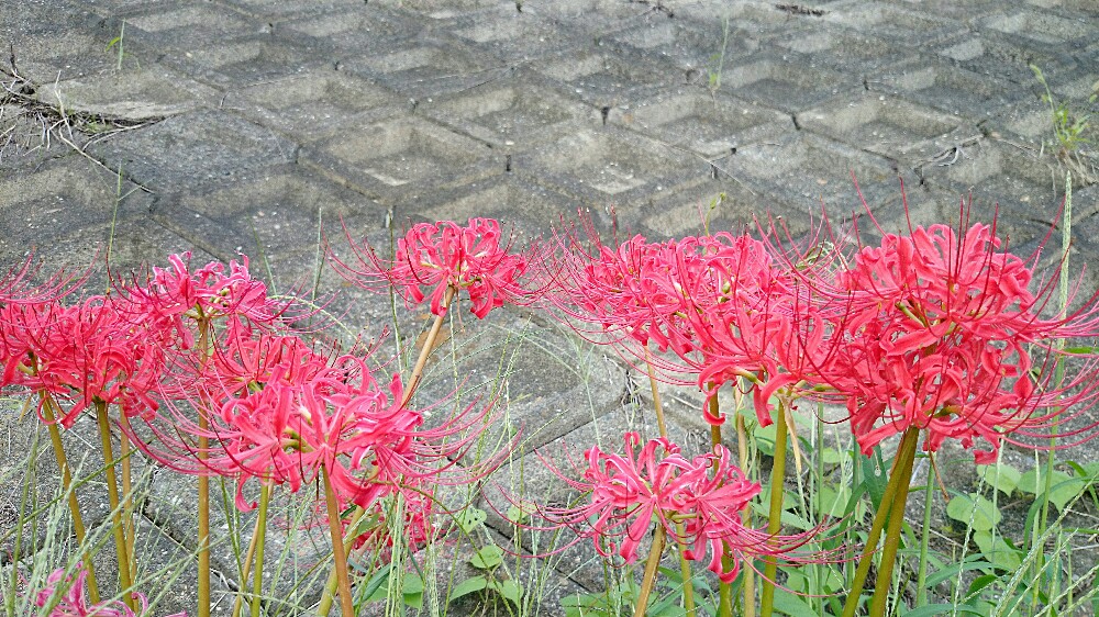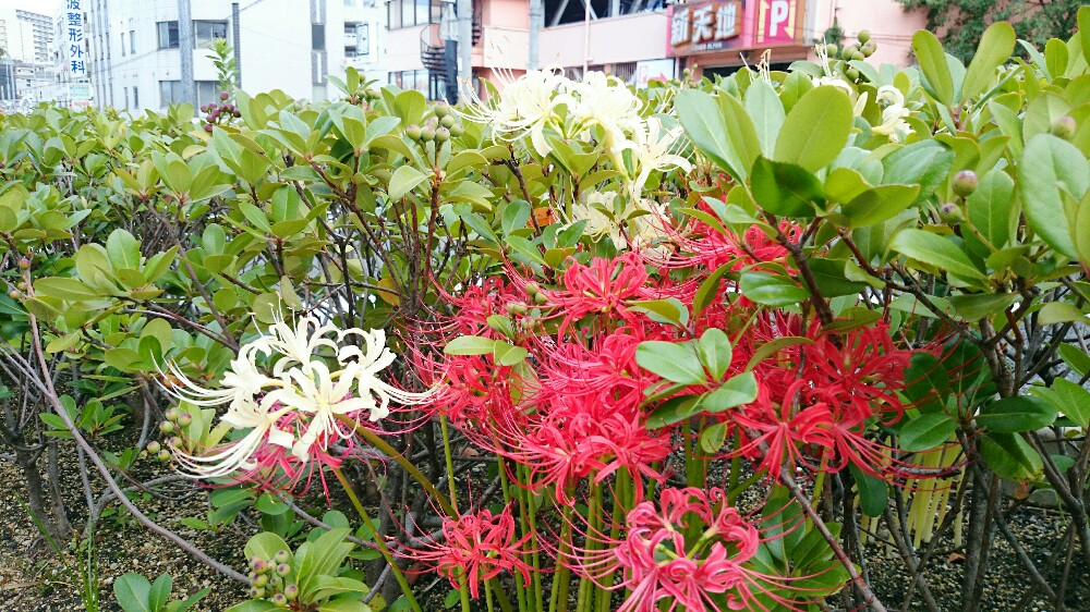 でも、あれですね。彼岸花って田んぼのあぜみちや土手沿いといった、静かなところで咲いているイメージでしたが、こういった人通りの多いところでも咲くんですね(*^^*)
