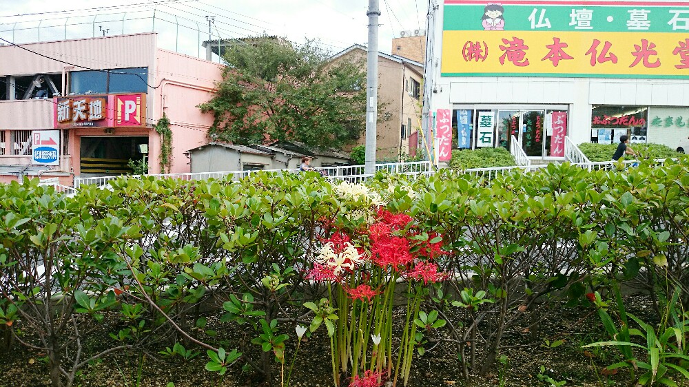 イズミヤ枚方店ちかく、道端で咲く彼岸花