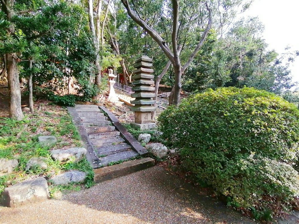 この階段をのぼると意賀美神社の境内です