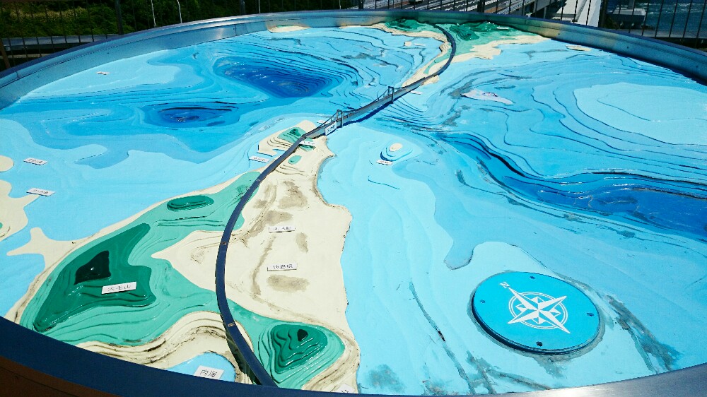 大鳴門橋と鳴門海峡の模型が置かれています。