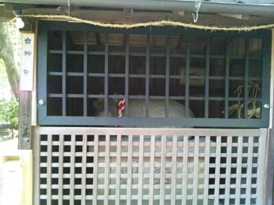 右側を見ると小さな小屋があり、札には【神牛】という文字が。