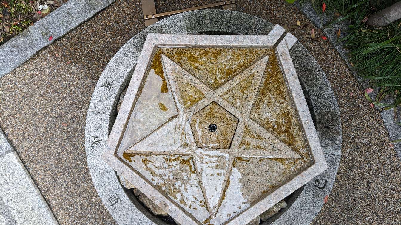 五芒星に型どられた晴明井は、一ヶ所だけ流水口があり、その年の恵方を表しています。立春において、その方角を変えているようです。