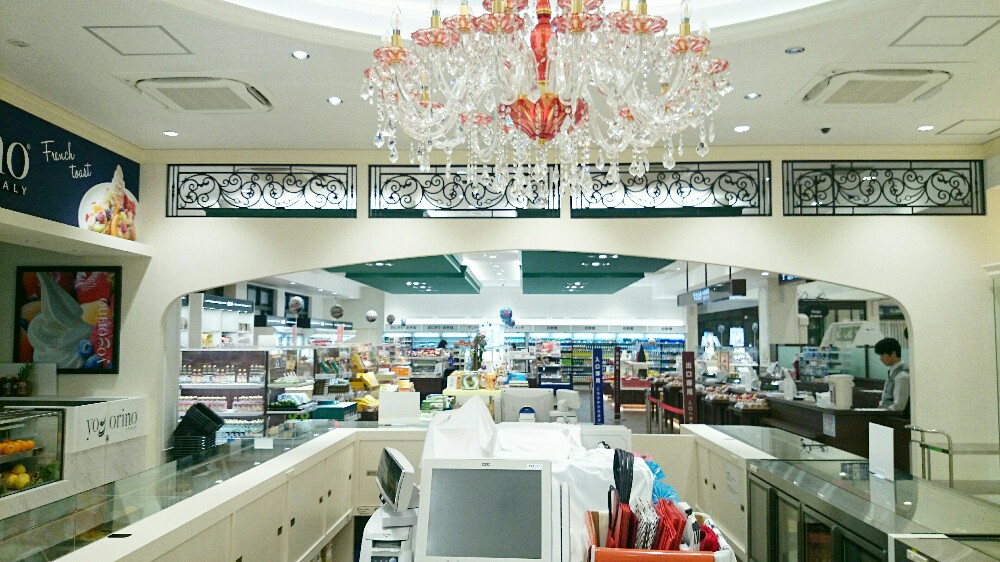 ②フリーラウンジとお土産コーナーの間から撮影。他のサービスエリアでは絶対に見掛けないだろうゴージャスなシャンデリア。