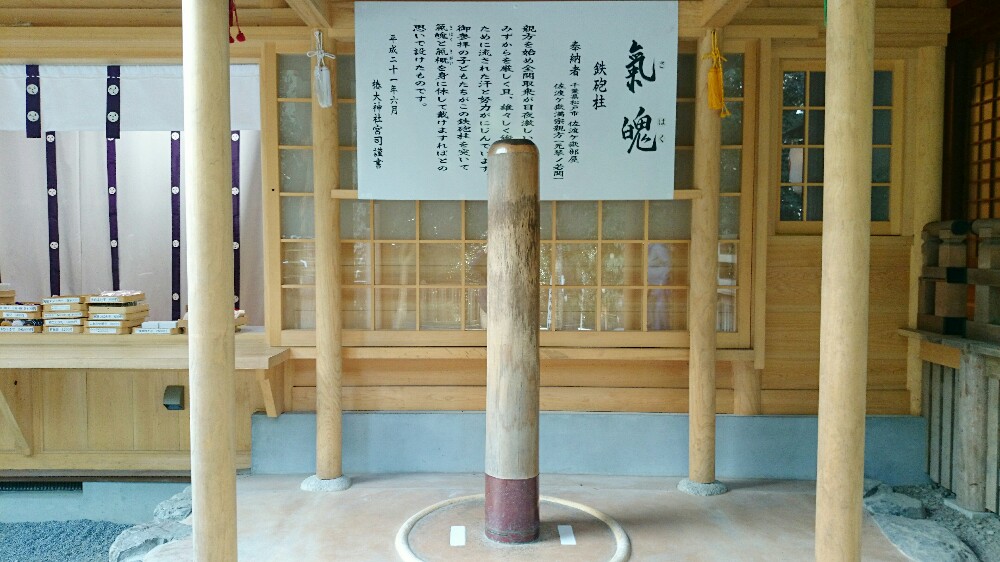 千葉県にある佐渡ヶ嶽部屋から奉納されたもので、高さ160センチ、直径22センチあります。