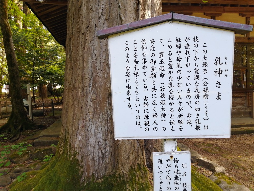 通称乳神(ちちがみ)さまと呼ばれている枝垂銀杏(しだれいちょう)。