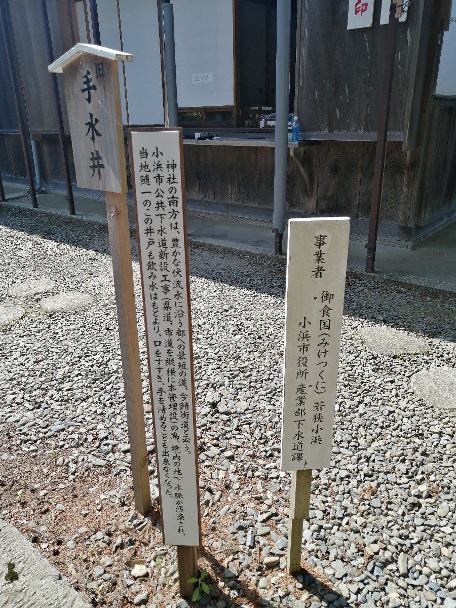 小浜市の公共下水道新設工事により、境内の地下水脈が汚染された。それにより、飲水はもとより、口すすきや手を清めることすら出来なくなってしまったようです。
